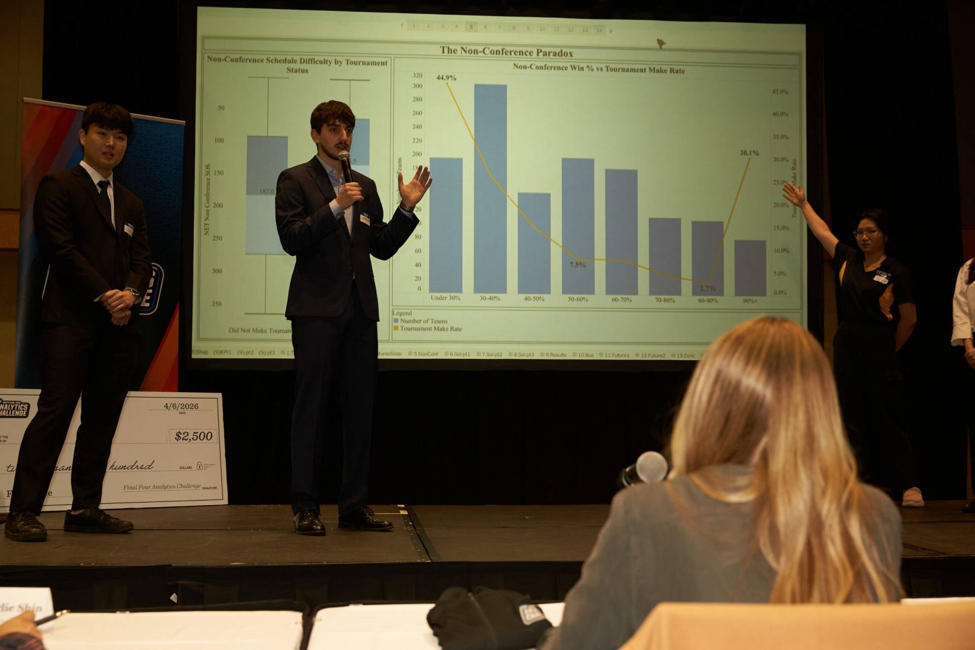 The following is the program schedule of events for the Final Four Analytics challenge. Be sure to stick around throughout the day. There are some fun giveaways and surprise appearances that will truly make it a memorable event.